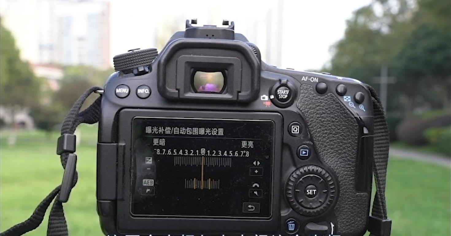 以佳能为例,曝光补偿功能的设置左边是更暗,右边是更亮,中间是正常。点击上面的加减号,是控制整个画面的明暗,就是曝光补偿的功能,而下面就是用来设置包围曝光的开关,点击这个开关,曝光指示条下面又弹出一个指示栏。从这个指示栏会分出两个光标同时往相反的方向移动,这两个光标加上中间的光标就组成了欠曝、正常、过曝这三种曝光状态。