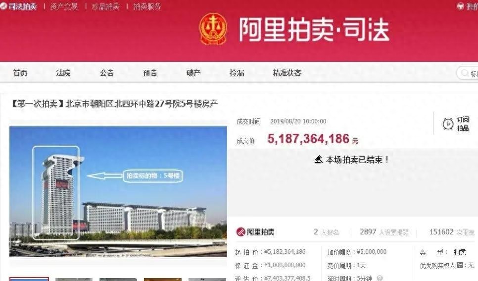 最近,盘古大观再次成为热议话题。据报道,1号楼和2号楼已经以26.74亿元的价格挂牌出售,而3号楼和4号楼则以18亿元进行拍卖。这四栋楼恰好位于过去“龙头”的位置上,“昔日龙头被拆,今日龙身被拍”。实际上,在“龙头”被拆除之前,盘古大观已经多次发生过楼宇转让事件,只是没有引起外界广泛关注。例如,在2019年8月,盘古大观中的5号楼就在阿里拍卖上以51.87亿元成交。