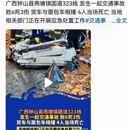 2025年7月24日,广西钟山县燕塘镇国道323线白沙井段,发生了一起重大交通事故!6人死亡、3人受伤,场面触目惊心!