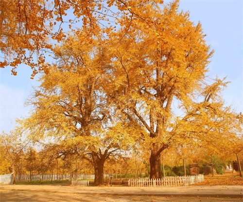 每年的11月中上旬,银杏叶开始泛黄飘落,正是观赏银杏的最好季节,每年的这个时候银杏树下都聚满了游客,踩着金黄的落叶,穿着鲜艳的衣裳,在田野里野炊,赏秋拍照。