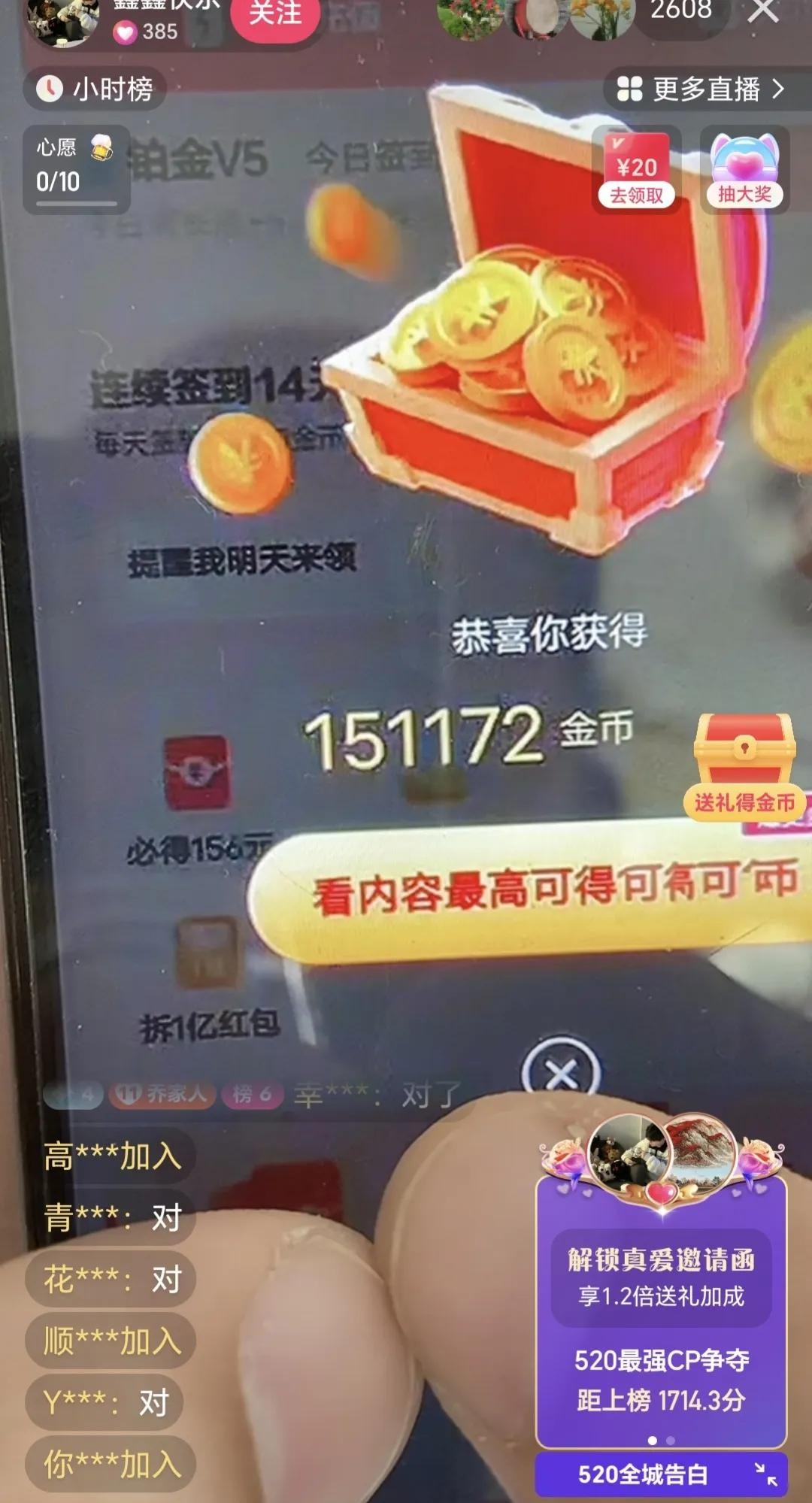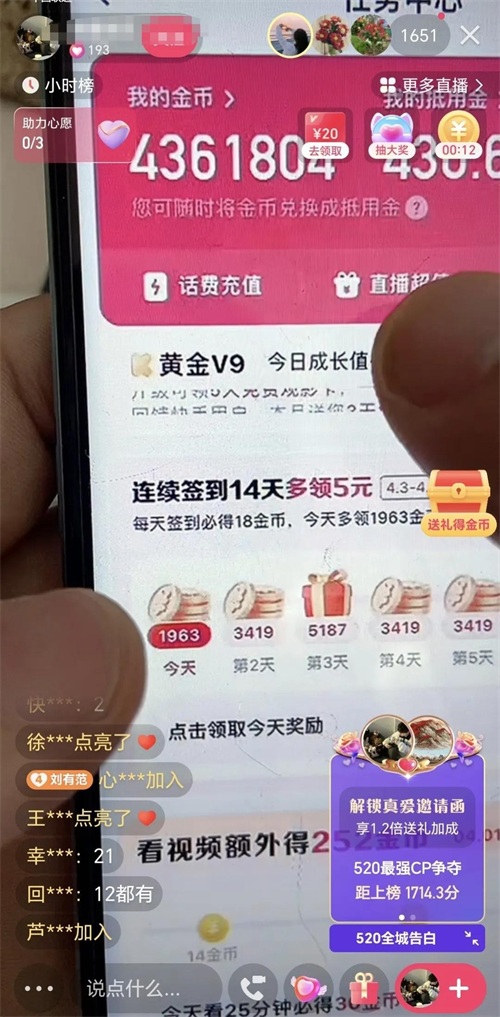 大家看到上面图片中的直播,都是一个套路,说是老师给你们的快手极速版免费升级,升级后就可以爆金币了,大家看看是不是太夸张了!