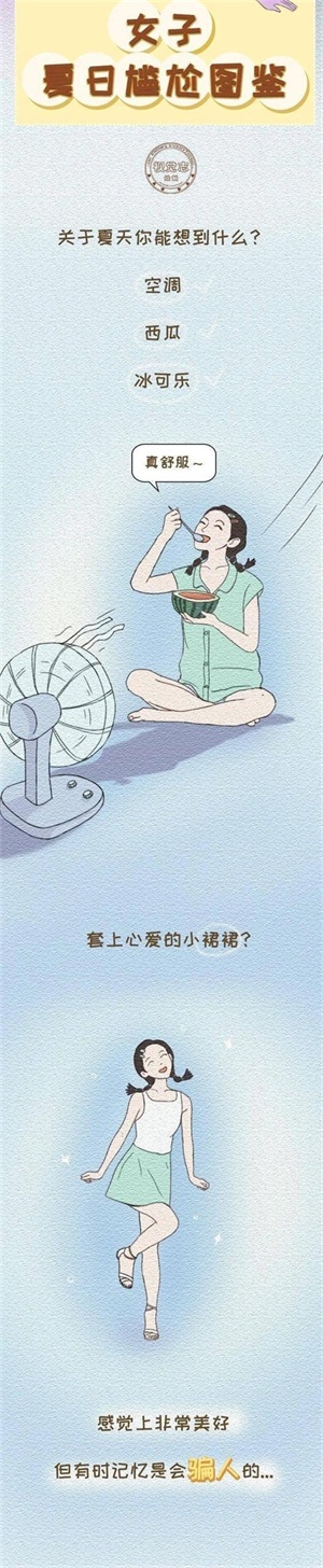 所以面对裙子对广大的女生朋友们来说,可谓是又爱又恨女生处于夏天季节出现的尴尬事,不仅于此,接下来以一组漫画的形式为大家分享一下,女生处于夏天季节,到底有多尴尬呢?不知道屏幕前的你们有同样的感受吗?