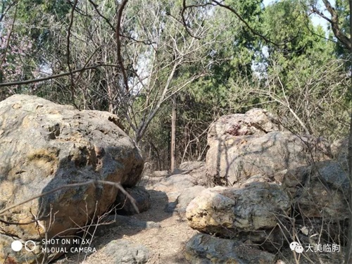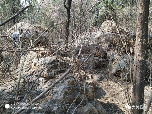 接近山顶的地方,在松柏林中,突然出现一堆大大小小的石头,散落在方圆二十来米的地方,大的有一米半高,小的也有半米高,当地人称为“鹁鸪子”,就好像是一个鹁鸪窝被哪个调皮的孩子从树杈上戳下来,鹁鸪蛋洒落在地上了。