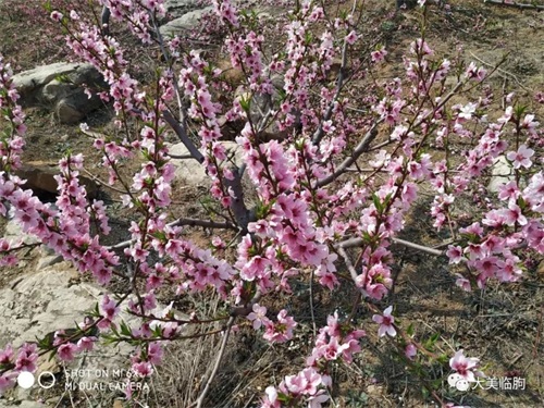 听老人们说,原来山顶有座庙,可惜的是现在连庙的遗迹也很难找到了,山顶被当地村民种植了一个核桃园,山的南面栽满了漫山遍野的桃树,漫步在桃林中,仿佛进了桃花源。