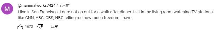 “我住在旧金山。 晚饭后我不敢出去散步。 我坐在客厅里看 CNN、ABC、CBS、NBC 等电视台告诉我我有多少自由。”