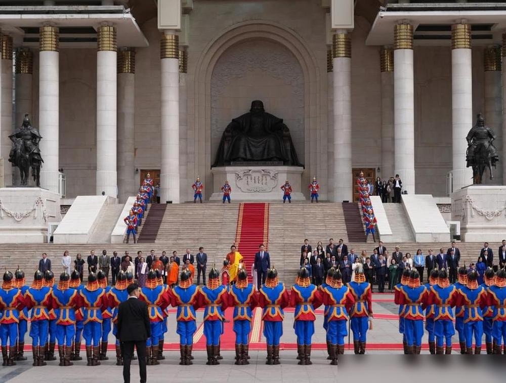 在蒙古国总统的安排下,一场盛大的欢迎仪式开始进行。