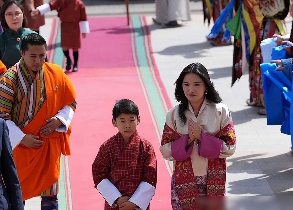 他们只能穿着简易款式参加欢迎活动,但是一家三口连同不丹小王子们都非常开心。