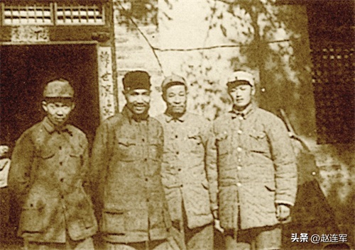 1943年,吴林焕(左一)在新四军第五师十五旅时与郑位三(左二)等合影。