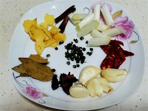 调料:食用油,盐,鸡精,八角,香叶,桂皮,生抽,老抽,蚝油,花椒,桔子皮,冰糖适量。