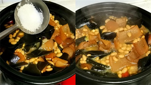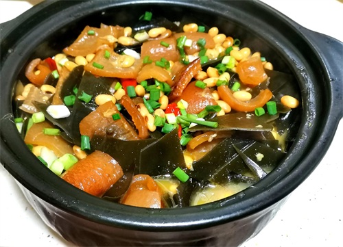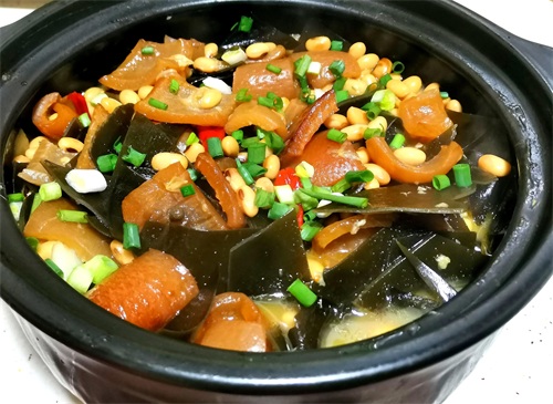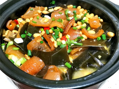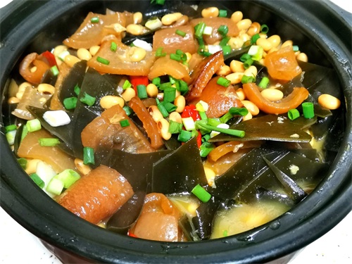 一道特别的美味的海带黄豆炖猪皮就做好了,Q弹又不腻,满满的胶原蛋白,真的太香了,喜欢的朋友赶紧收藏起来吧!