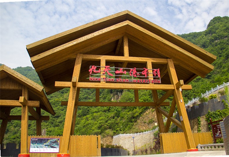 6、九天山景区位于柞水县城南,这里有九天圣母庙及九天玄女的美丽传说。景区汇幽、奇、险、秀于一身,峰、林、潭、瀑于一地,行走其间,宛如仙境。九天山连绵起伏,山顶高耸入云,最高峰玉皇顶海拔2483米,直插云霄,比华山还高300多米。登上九天山,只见烟云缭绕,层层笼罩,苍山如海,披锦烁金。山上古木参天,藤萝缠绕悬挂。