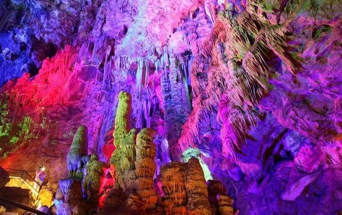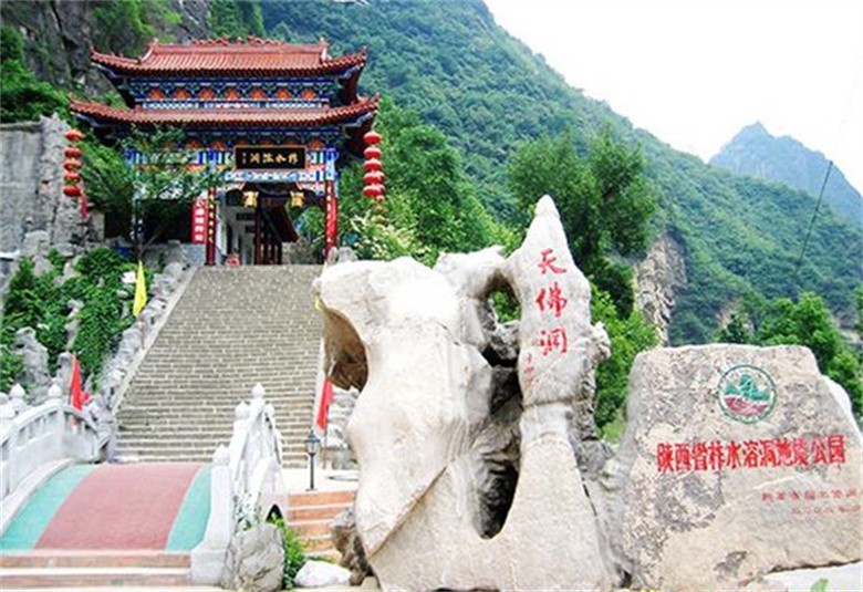 2、柞水溶洞是我国北方最大的溶洞群,被誉为“北国奇观”和“西北一绝”。它位于柞水县石瓮镇,地处秦岭南麓,比较有名的是天佛洞、天洞、风洞、百神洞。天佛洞全长900余米,分上、中、下三层。天洞直入云霄,钟乳石遍布,景色绮丽。游览风洞时,因为洞穴的“烟囱效应”,即洞内外不同温度的空气自然对流,形成奇风迎送,故名风洞。百神洞古称玉皇宫,洞内置玉 皇、龙王等100多尊神像,故名。柞水溶洞内石柱石笋千奇百怪、美轮美奂,外部山清水秀、风光迷人,被赞“大奇大美大艺术,谁人品味不折腰。”如今这里是著名的国家地质公园,东西两侧还开辟了西甘沟、东甘沟两个乡村游景区 。东甘沟有两棵银杏树,树龄1700多年,依然茂盛如初,两棵树相距7米,根系盘结,枝丫交错,如一对夫妇亲密私语被称为“夫妻树”。