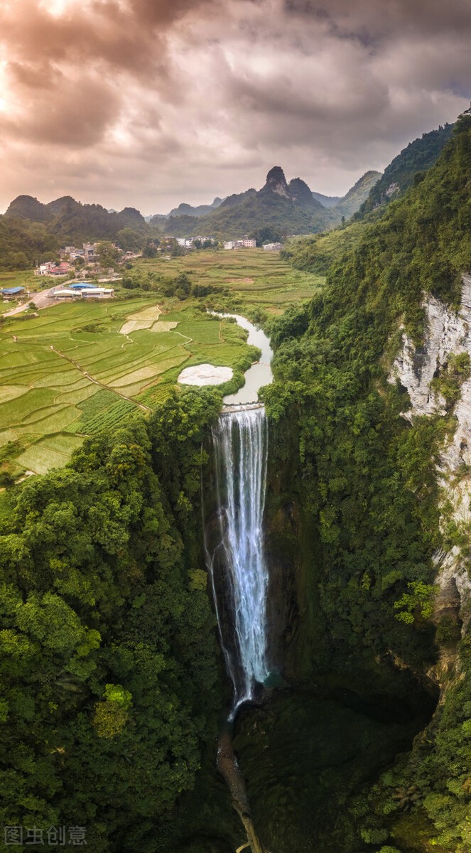 远观通灵大峡谷,长长的瀑布从绿色的山顶倾泻而下,就如诗句中所说的“疑是银河落九天”。