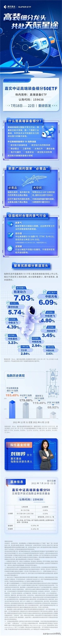 5、跟踪高装细分50指数的基金只有1只,嘉实高端装备ETF(认购代码:159638)基金经理:刘珈吟,7月18日至7月29日(已公告延期)首发募集,感兴趣的投资者可以关注一下。