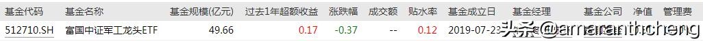 3、跟踪军工龙头指数基金数量为1只,规模为49.66亿元,详见下表: