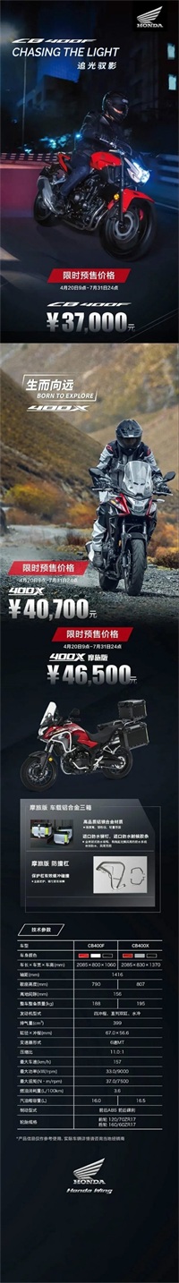 突然的,本田官方公布了两款400cc排量车型的售价,如下图。