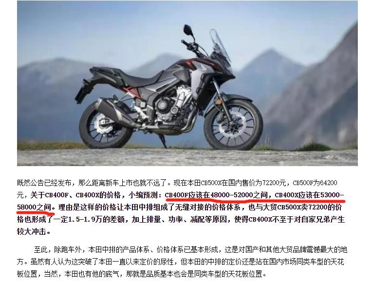 其实早在今年四月份,本田内部就有消息人士透露本田此次的两款400cc车款,最低售价会跌破4万元大关,骠骑府是有幸了解到这个消息的少数人之一,但是当时不方便讲的那么清楚,因此只能说价格上会颠覆你的想象。
