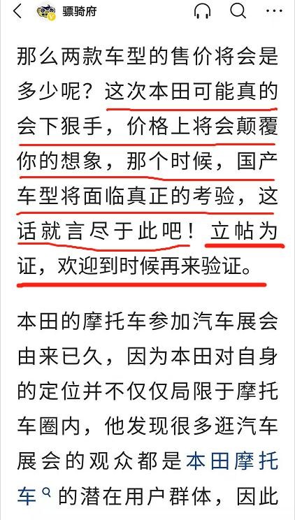 但是限于自身实力所限,还不能直面进口品牌尤其是本田这样的大佬级别带来的冲击,品牌影响力小,产品设计及品控还有不少不成熟的地方,产业规模及抗风险能力也不是进口品牌的对手,本田对此是看的很清楚。