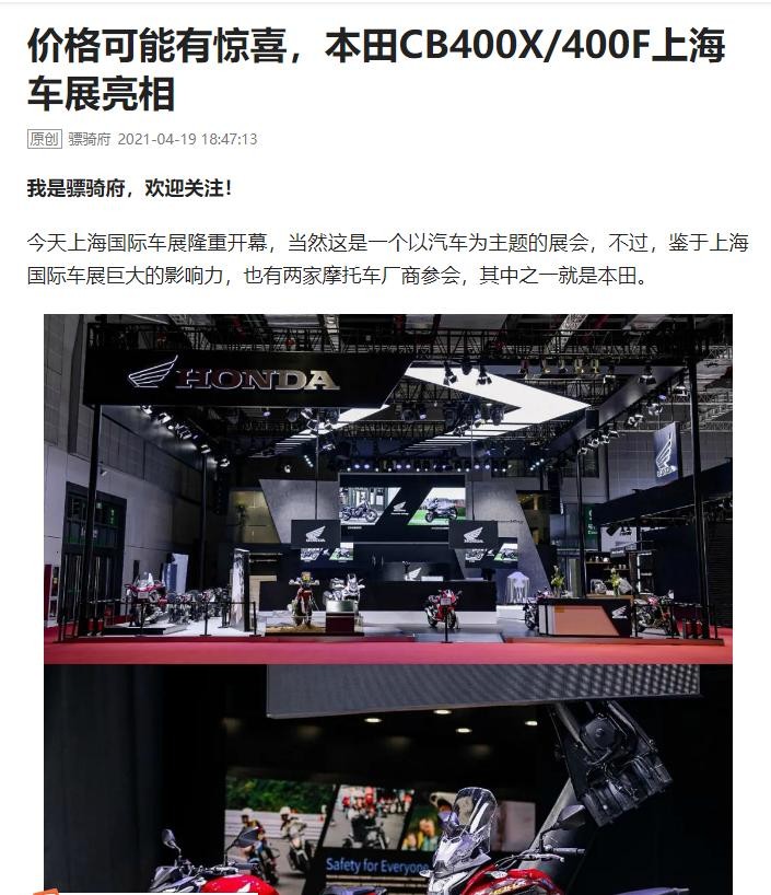 请先容本人放个马后炮,4月19日的骠骑府原创文章就已经隐晦地提到了这一点,只不过很多朋友还不太相信——价格可能有惊喜,本田CB400X/400F上海车展亮相。