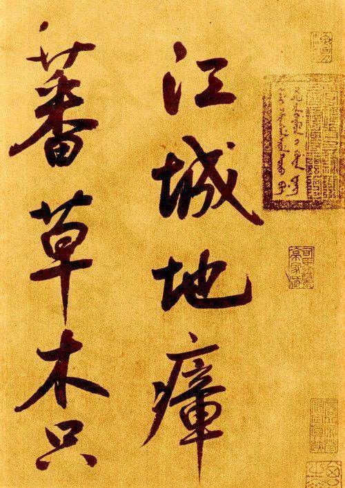 在鲜于枢的书法中,《苏轼海棠诗卷》堪称代表作之一。该作纸本,行草书,纵34.5厘米,横584厘米,1301年大德五年书,北京故宫博物院藏。