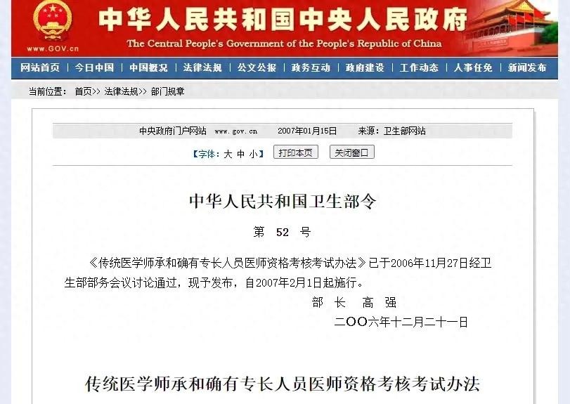 传统医学医术确有专长考核(以下简称确有专长考核),是对确有专长人员是否具有申请参加医师资格考试的资格评价和认定。国家中医药管理局负责全国确有专长考核的监督管理工作。省级中医药管理部门负责辖区内的确有专长考核工作。设区的市级卫生行政部门、中医药管理部门负责辖区内确有专长考核的组织实施工作。国家中医药管理局中医师资格认证中心在国家中医药管理局领导下,具体负责确有专长考核的技术性工作。