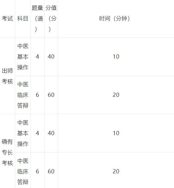 出师考核中的临床实践技能考核和确有专长考核中的临床实际本领考核合格成绩两年有效,综合笔试合格成绩当年有效。