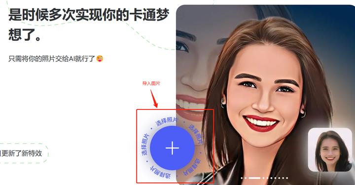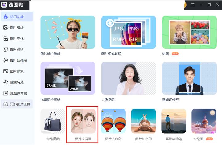 点击进入界面之后,我们在界面点击【照片变漫画】即可开始我们的图片变换之旅喽~