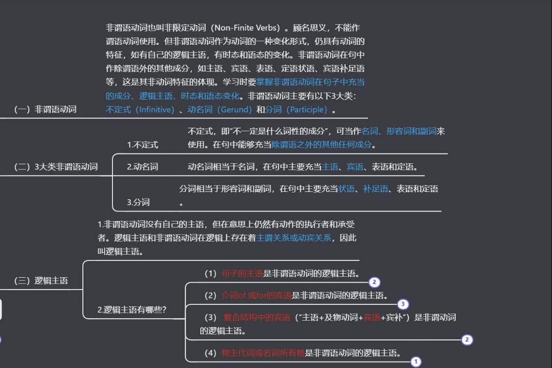 非谓语动词在句中作除谓语外的其他成分,如主语、宾语、表语、定语状语、宾语补足语等,这是其非动词特征的体现。学习时要掌握非谓语动词在句子中充当的成分、逻辑主语、体和语态形式。非谓语动词主要有以下3大类:不定式(Infinitive)、动名词(Gerund)和分词(Participle)。