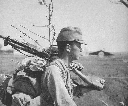 此外,为了推陈出新,日本人为了增加九六式轻机枪的“白刃”作战能力,特意在“拐把子”的前端装上了刺刀,出发点想得太过完美,可又忽略了九六式轻机枪高达9公斤的自重,加个刺刀整体枪身的重量怕是有10公斤,想象一下,身材矮小的鬼子端着二十多斤重的枪和人白刃拼杀,画面实在不敢想象。