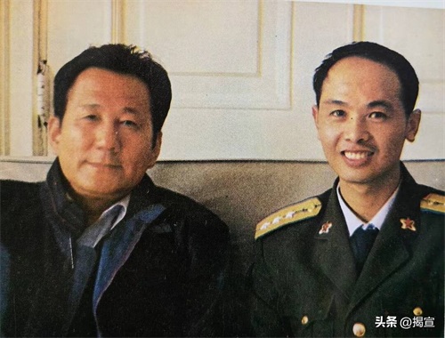 1990年10月8日,在北京第十一届亚洲运动会闭幕后的第二天,揭晓上尉(左)到北京亚运村向中国体育代表团团长李富荣(右)赠送中国冠军印章