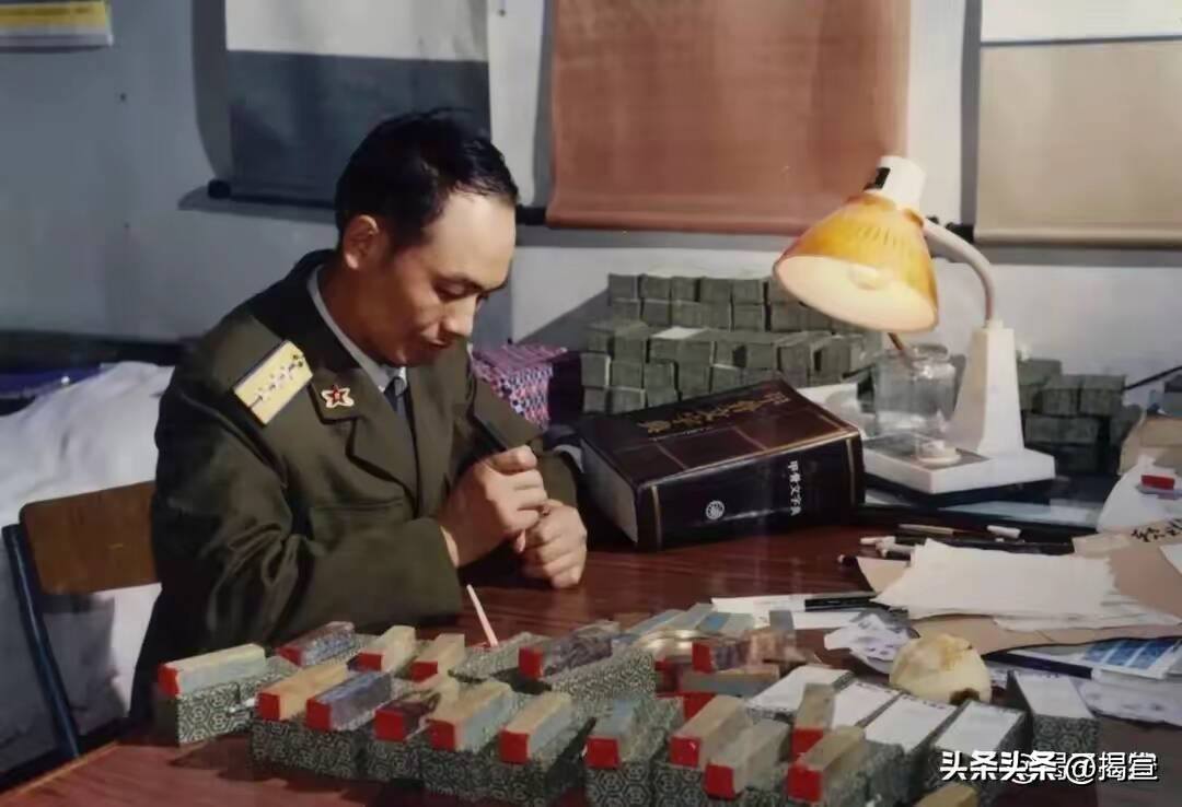 1990年,在北京第十一届亚洲运动会期间,揭晓奋战14个昼夜,为亚运会中外冠军篆刻金石印章263枚,图为揭晓在创作冠军印