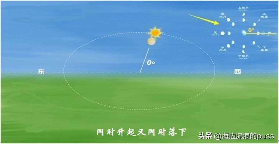再过几天,日月黄经差重新为0°,日月再次合朔,又开始一轮新循环,月亮再一次“偷偷的变脸”。
