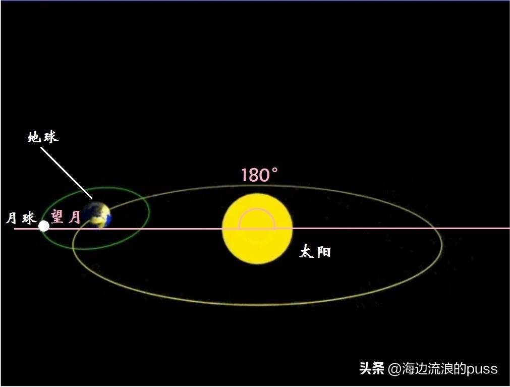 到了农历十五、十六,日月黄经差为180°时,月亮刚好位于太阳对面,因为有黄白交角的存在,地球不能遮挡住日光,这天傍晚太阳落山时,我们可以看到一轮圆月从东方地平线上升起,夜半位于正南方天空,清晨时从西方地平线落下,整晚都能看到皓月当空。日全食时,还有机会看到血月(红月亮)哦。