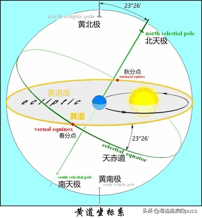 什么是黄经呢?在黄道坐标系中,春分点所在的黄经圈平面与天体所在的黄经圈平面之间的夹角,沿黄道逆时针方向以角度度量,范围是[0°,360°]。简单来说,以黄道面和黄极(通过观测点垂直于黄道面的直线与天球的交点)为基准,在天球上画个网格,横向的坐标叫黄纬(天体和天球中心的连线与黄道面的夹角),纵向的坐标叫黄经。