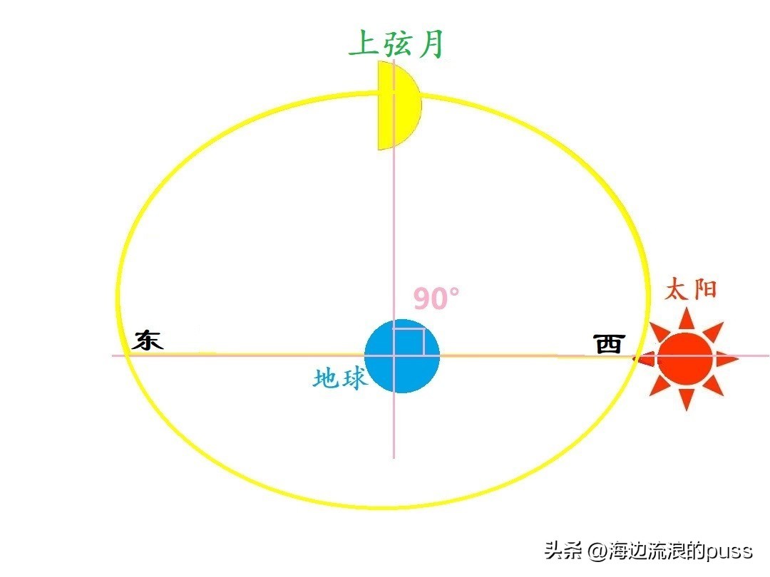 所以我们只能在上半月的上半夜看到上弦月,被太阳照亮的月面朝西,位于西边天空,所以人们总结的口诀叫“上上上西西”。