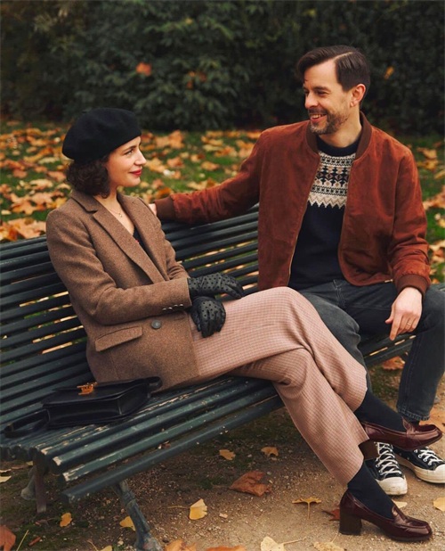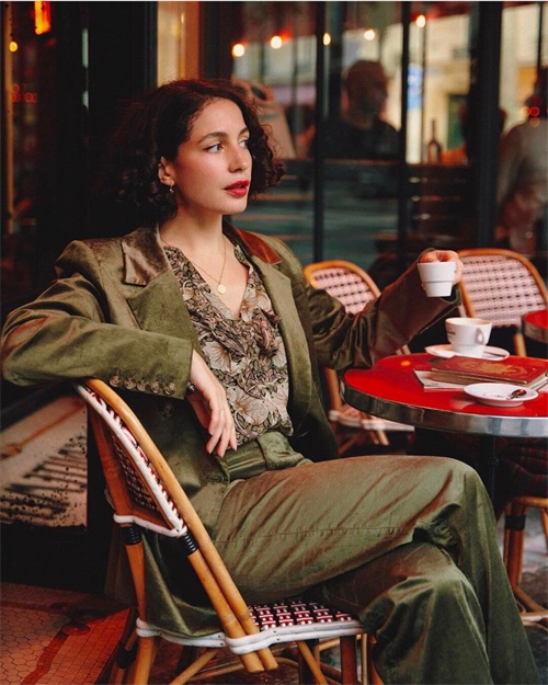 色彩可以说是法式穿搭中的灵魂所在,除了极简的黑白灰棕这些素色是法国女人的最爱,她们还偏爱一些明度比较低、色彩较为浓郁的有彩色。比如说柿子红、藏青色、酒红色、焦糖色、墨绿色......这类颜色有一个共同的特点就是既沉静又明艳,自带复古做旧的滤镜,就像是从艺术家油画中剥离出的颜色,有着历史的沉淀韵味。