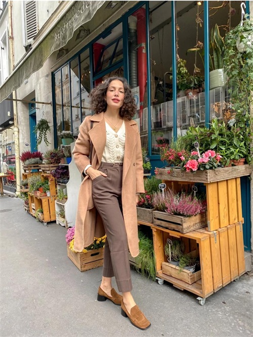 一件燕麦驼色的长款大衣,流畅的线条和绵软的面料拼凑成了舒适大方的模样,宽大的版型像是浴袍一样,天气冷的时候出门就将它随意地围裹在身上,卷入大衣里的女人味,或许表现得没有那么直白,但是转身回眸的瞬间,暗流涌动的风情味却可以引起无限的遐想。