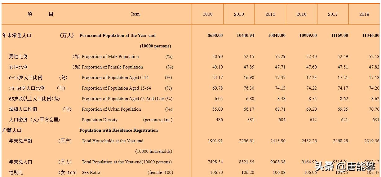 2018年底,广东常住人口1.1346亿,户籍人口0.9502亿,常住人口比户籍人口多1844万,占户籍人口的19.4%。常住人口密度为631人每平方公里,相当于人均2.38亩土地。