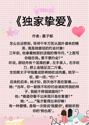 短评:甜宠,双c,HE。传说中的牛逼人物出现,竟然是她曾经的约会对象!男主身世略惨常年自己有了孤僻症,女主就是他的小太阳!爱情就是我爱你的过程你也刚好爱我!无虐,没什么乱七八糟的配角,喜欢女主性格!男主萌死了!