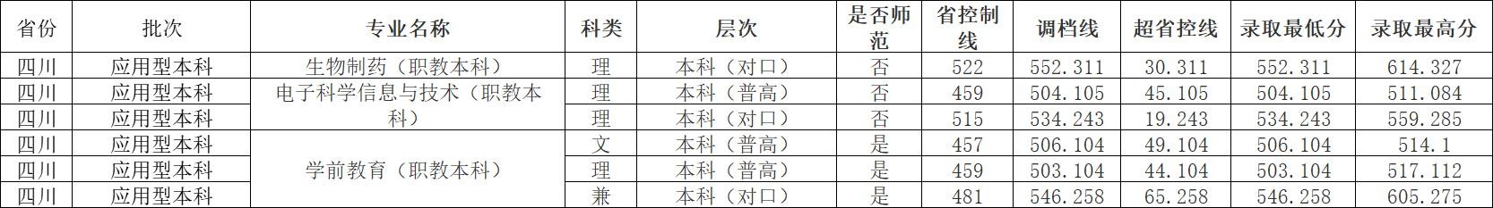 3、2024年在四川应用型本科各专业录取分数线