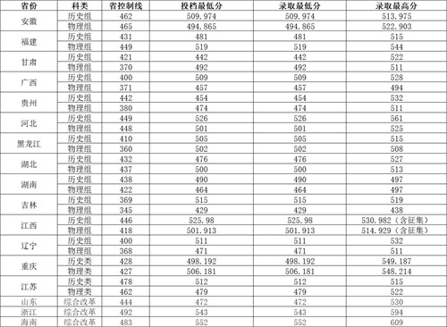 在安徽本科批物理类录取最低分494分,历史类录取最低分509分。