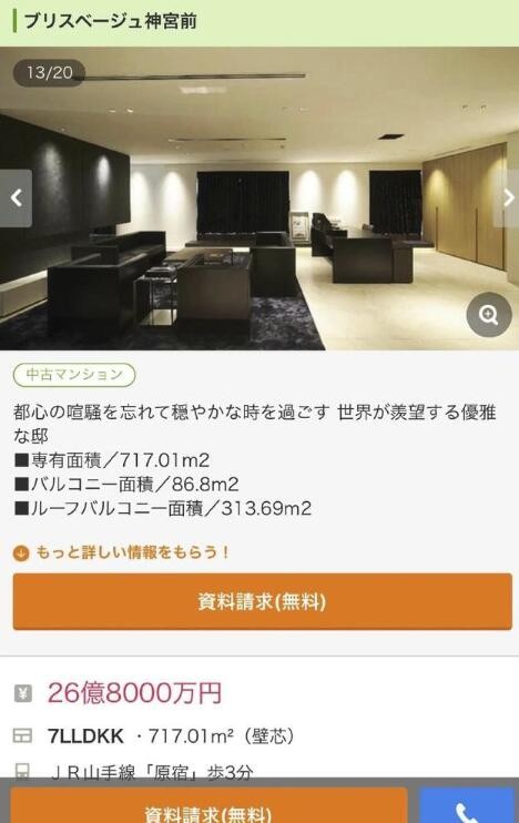 据香港媒体报道,最近有日本地产中介的朋友圈放售疑似周杰伦的日本的豪宅,这间豪宅位于日本原宿,总共有2层高,有巨厅同巨型厨房外,还有个超大平台!他的实用面积有717.01平方米,售价是26亿8000万日圆(约1.77亿人民币)。