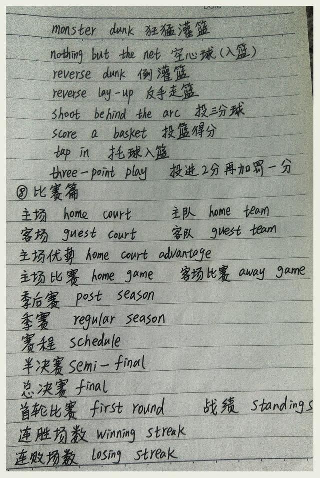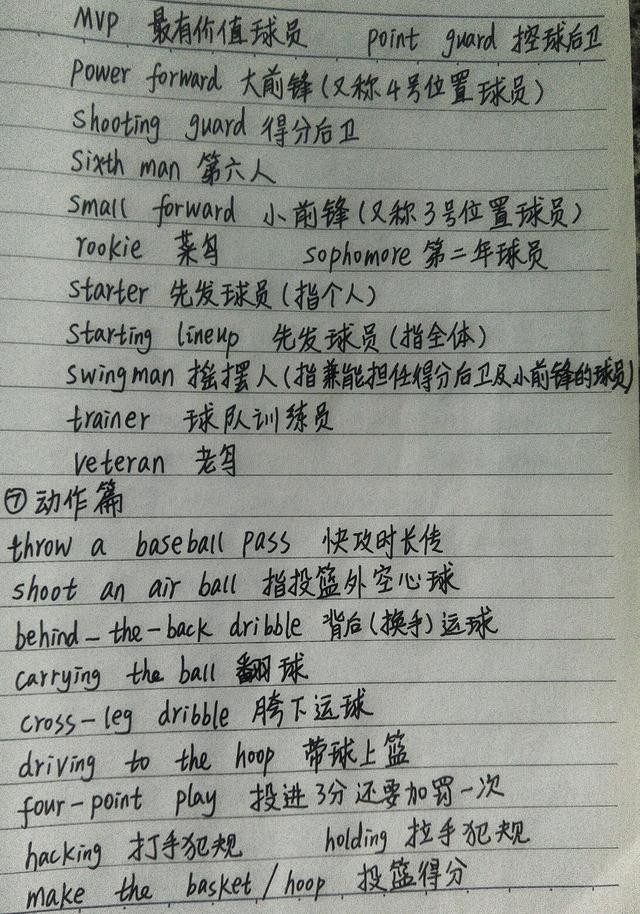 篮球英语词汇总结