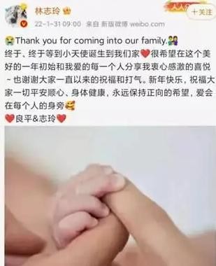 2022年1月31日,林志玲在社交媒体上宣布生子,其哥哥林志鸿透露,林志玲儿子于元旦前在日本出生。
