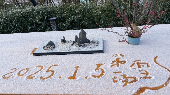 首场降雪为景区增添了几分冬日的韵味,也为游客们带来了小小的惊喜。为保障游客的出行安全,景区加强对重点路段的巡查工作,景区环卫和相关单位干部员工及时清扫游步道积雪,确保道路通畅。