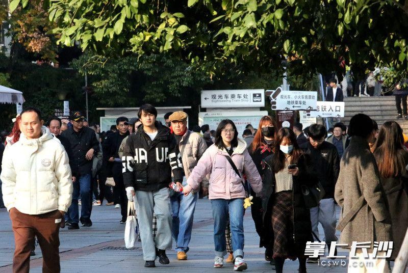 冬日的橘子洲色彩斑斓,景色怡人。今日下午,不少市民、游客来到橘子洲游玩打卡。长沙晚报全媒体记者 贺文兵 摄