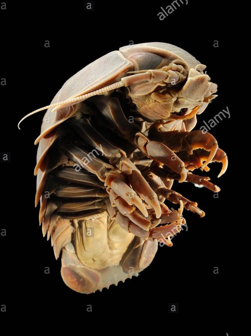 你一定见过鼠负吧,也就是传说中的西瓜虫(图9那位)~它们是等足目生物,然而……在深海中,它们有一个巨型大哥哥——【大王具足虫Bathynomus giganteus】