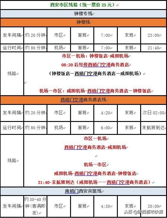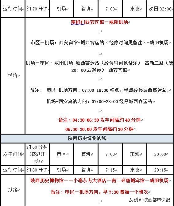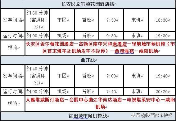 今起西安机场大巴开通钟楼站点 首末班时间分别为早7点晚11点