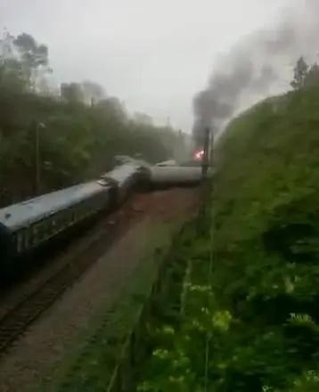 一列从济南到广州的客运火车侧翻!5节车厢脱轨,现场起火