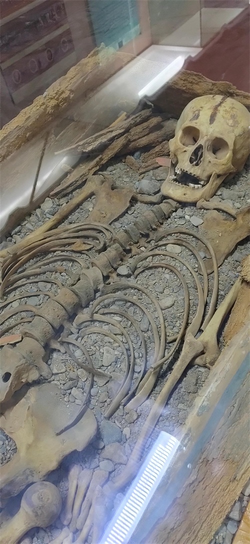 值得一提的是,在王府内有一个小型博物馆,内陈列着一具女性骸骨,被命名为“龟兹美女”。她是在苏巴什佛寺遗址中发现的,她的腹部有一些婴儿的骨头,由此,专家推断,她当时怀有身孕,难产而死。她大约在20岁左右,身高有175cm,服装讲究,陪葬品也很丰富,猜测是王室成员。